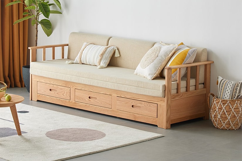 Convertible Oak Wood Floor Sofa for Dual Functionality
