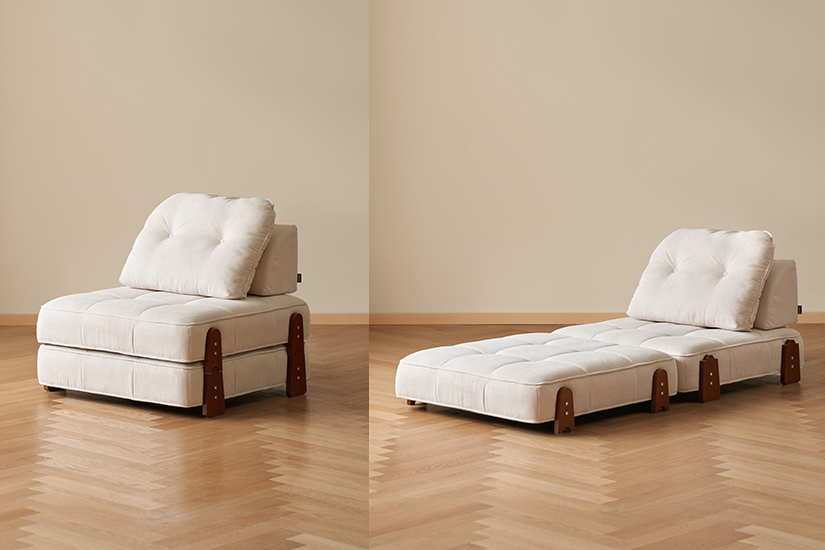 A convertible floor sofa with a wooden frame is perfect for studio apartments. It works well in homes where living and sleeping areas mix. It functions as a sofa during the day and converts into a bed or lounge area when needed.