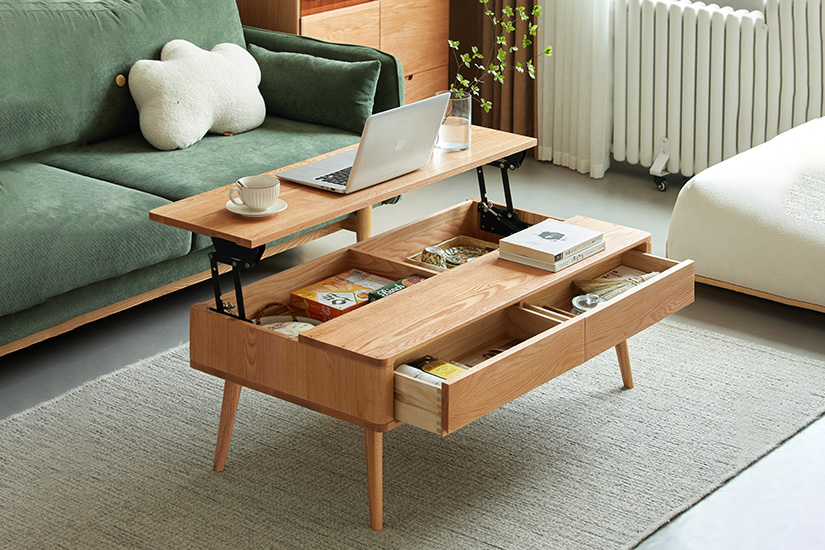 An extendable oak coffee table is one of the most practical choices for small apartments. It serves as a small table for everyday use. You can easily extend it when you need more space for guests or working from home.